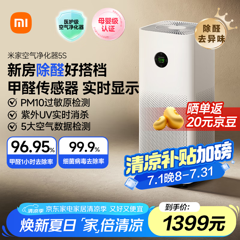 米家空气净化器5S京东促销,到手价1005元